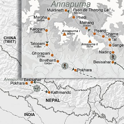 MAPA SITUACIÓN DEL TREKKING DEL ANNAPURNA